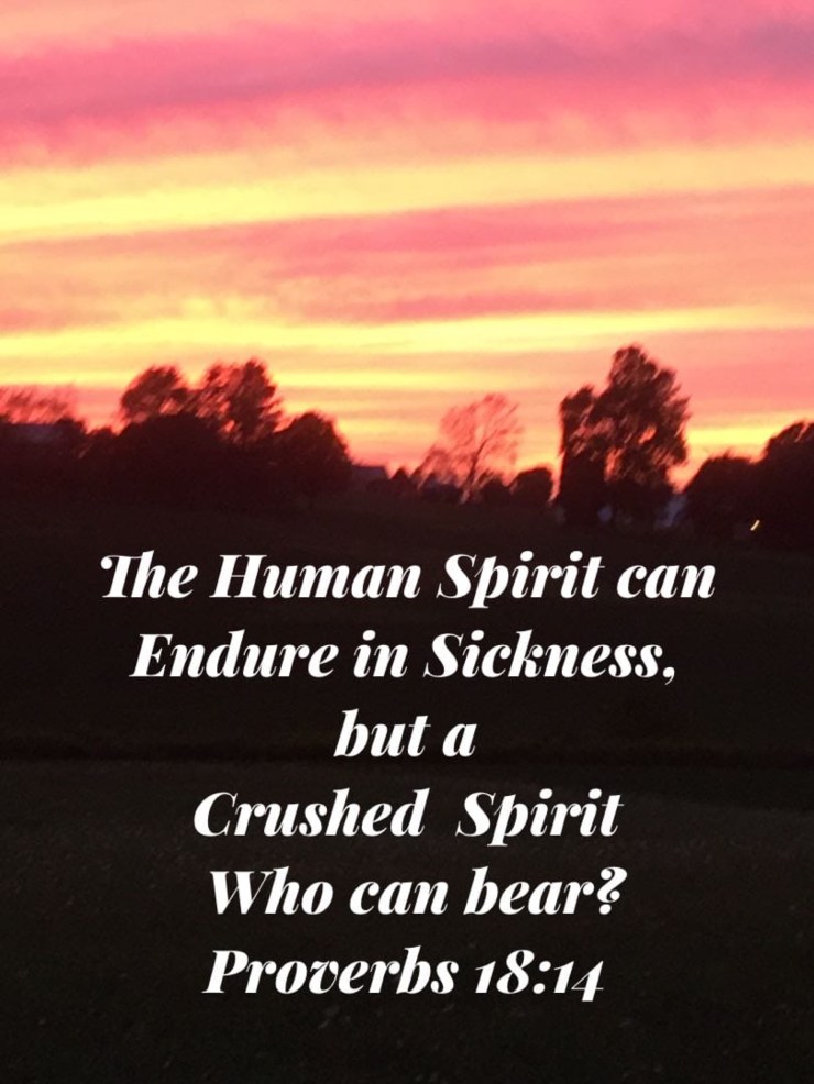 As you bask in His presence remember the blessings you are thankful for. Remember“A cheerful spirit gives strength even during sickness. But you can’t keep going if you have a broken spirit.” Do not give up!