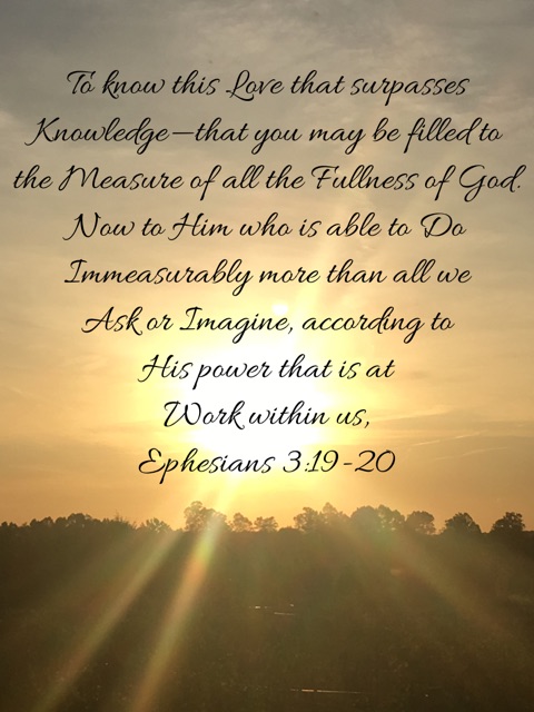 To know this love that surpasses knowledge that you would be filled to the measure of all the fullness of God and may that strengthen you with HIS power within our inner Spirit.