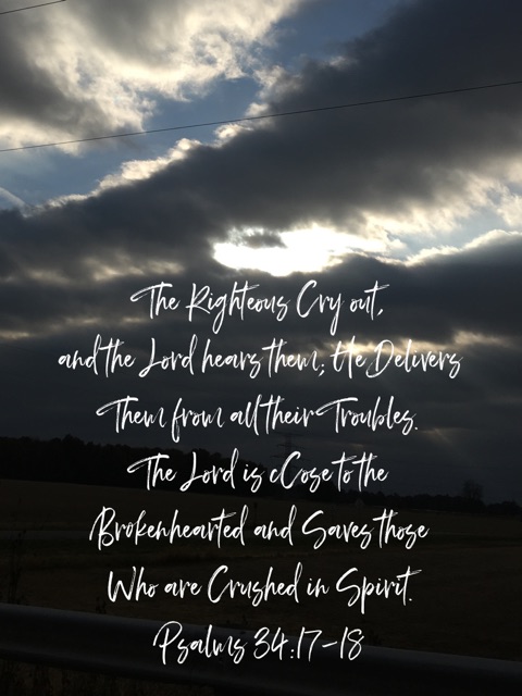 As we turn to and trust the Lord He is close to us. He holds us tightly when we are broken-hearted and no one else even knows. The Lord saves us when we our spirits are crushed by circumstances in life.