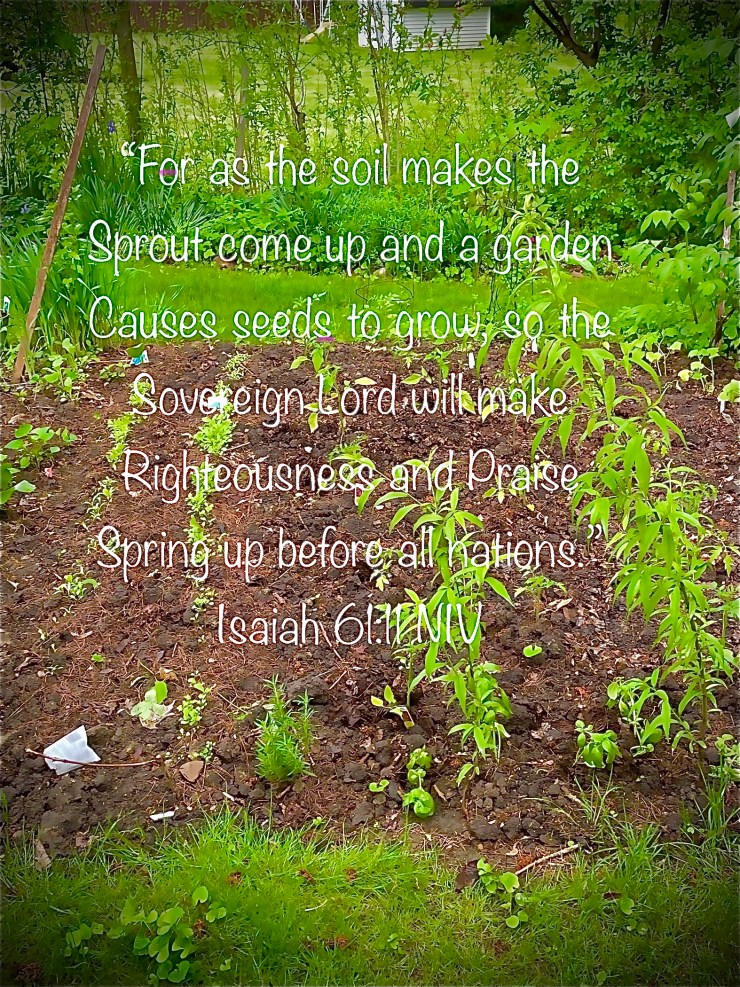 What do we have to do to a garden? We must carefully plow the soil, prepare hearts, we water and fertilize just as we do with the Word of God bringing food into our souls. But sometimes the weeds of life suck out our energy just as weeds will steal the nutrients that the fresh new plant needs. So our gardens have to be staked up, tended, weeded, fertilized and the best kind of watering is a spring rain!