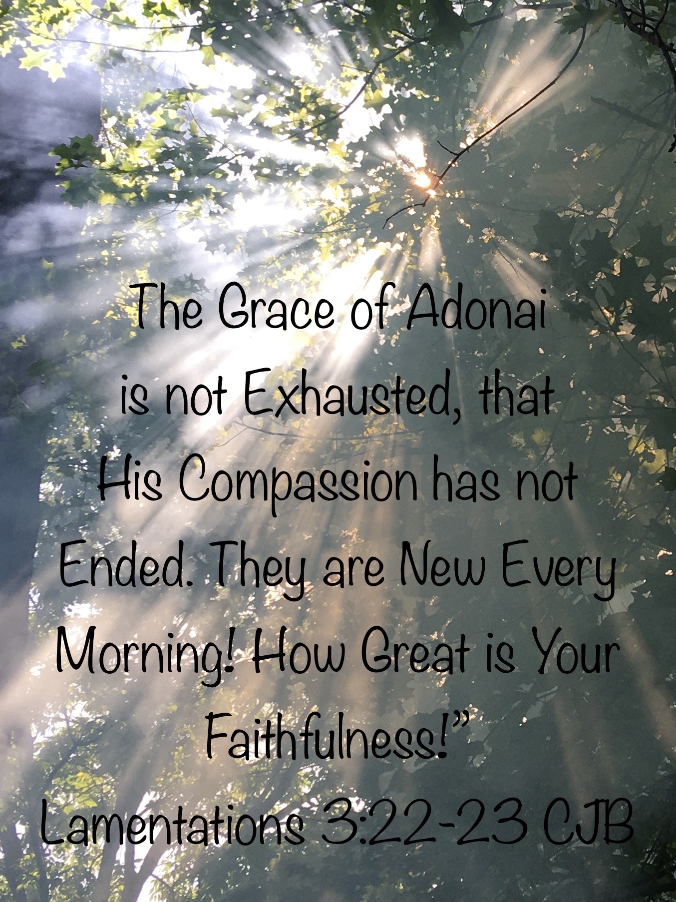 God’s Grace is new every morning; great is your faithfulness. I say to myself, “The Lord is my portion; therefore I will wait for Him.”