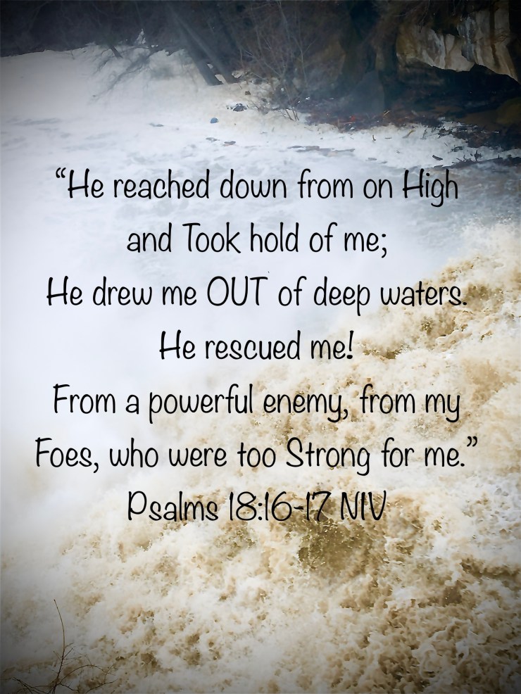 David too was overwhelmed! He was running while his enemies were searching for him. Even while hiding in a cave David was overcome by his emotions. However, he cried out to God! Psalm 18 is a remarkable remembrance of God’s faithfulness when His enemy surrendered him like a flood.