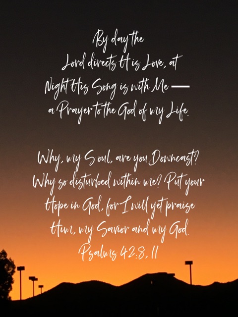 I love that David spoke to himself, asking his soul questions. “Why am I so downcast”? Have you ever asked yourself the same thing? Especially today the anxiety of circumstances in our nation and the world it’s hard not to be downcast listening to all the reports on the news.